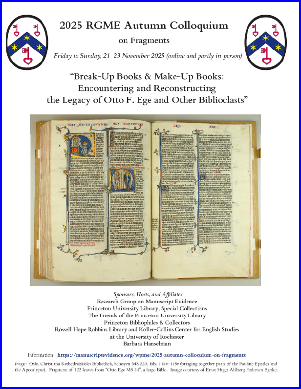• RGME Workshops on “The Evidence of Manuscripts, Etc.” (online, in person, or hybrid)