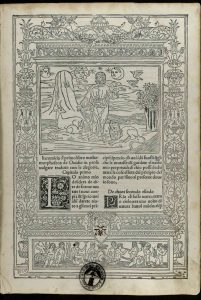 Collection of William Voelkle, Framed Leaf from the Saint Albans Bible: Recto under glass, Top. Photograph by William Voelkle.